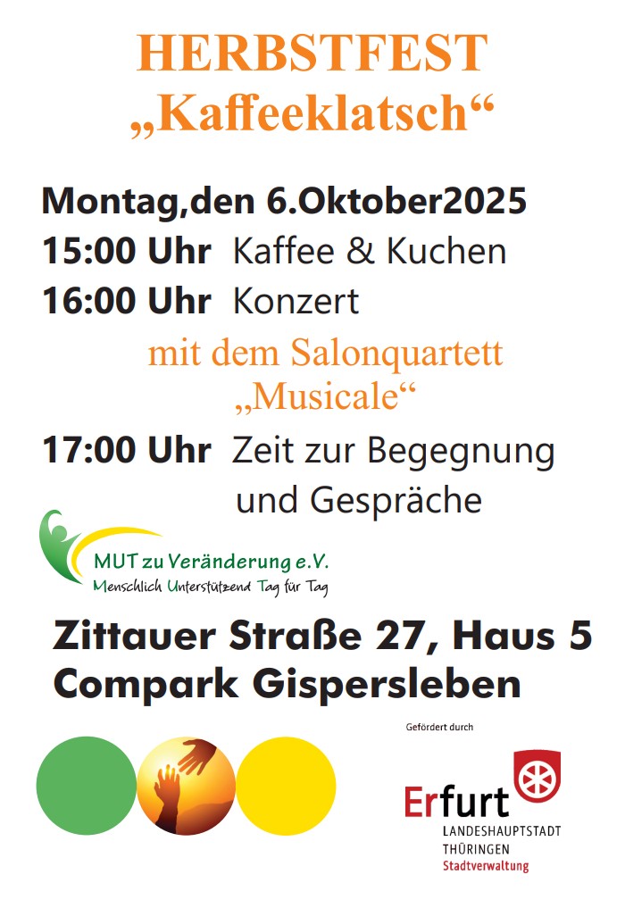 Jahreszeitenkonzert „In einer kleinen Konditorei“ zum Herbstfest des Vereins „Mut zu Veränderung“...